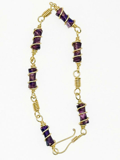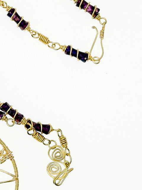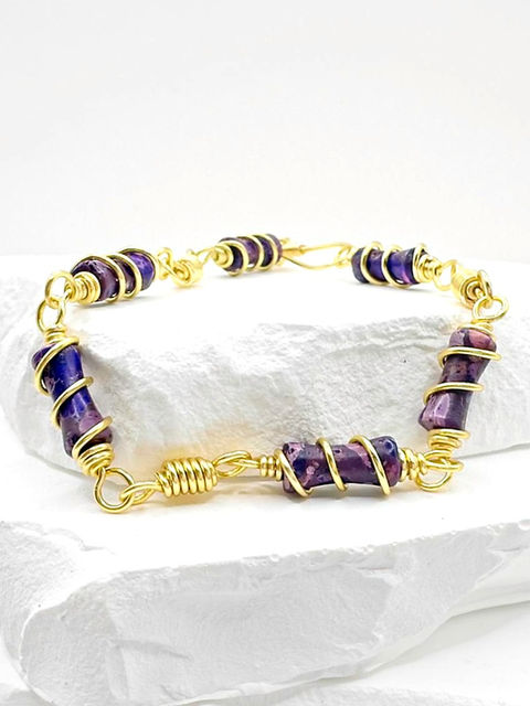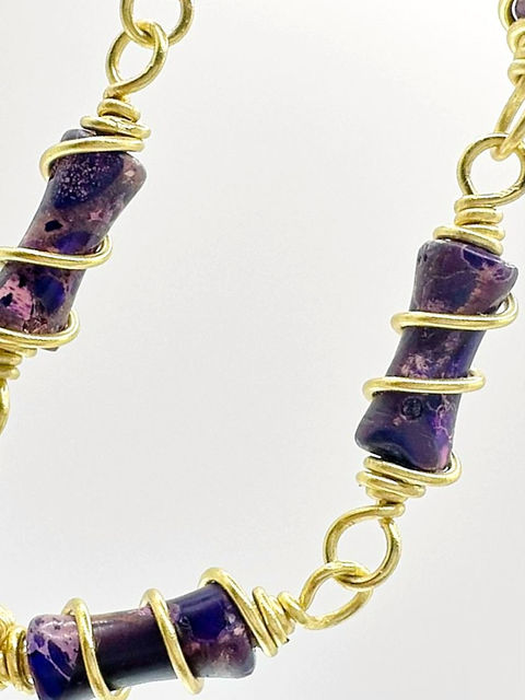 Completing the set, the bracelet mirrors this design, with six imperial jasper beads wrapped in brass wire, offering a harmonious balance to this exquisite collection. Each piece is fastened with a signature DSC swirl hook and eye clasp, ensuring a secure and elegant closure. This set not only accessorizes but also tells a story, connecting the wearer to the mystique of a civilization that has captivated the human imagination for centuries.