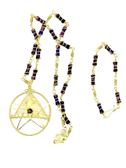 This Handcrafted Egyptian Imperial Necklace and Bracelet Set is a stunning homage to the rich tapestry of Egyptian mythology. The Seba, or star emblem, is central to this design, symbolizing the celestial deities and constellations revered in ancient times. These stars, known as the 'followers of Osiris,' are intricately linked with the souls of the departed in the Egyptian Underworld, Duat.